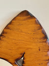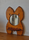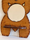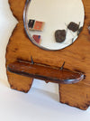 Carved mirror in a torso silhouette. Has a round mirror and a shelf with a depth of 4.5"
