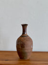 Brown stoneware vase with tapered neck in various glazes.