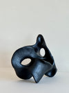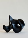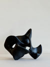 Abstract standing sculpture in ceramic, with painted black satin glaze.