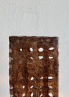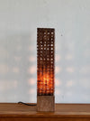 A base sculpted from a 250-year-old Pasadena Oak tree. The diffuser is perforated paper with a resin application. The preferences offer s soft dappled light.
